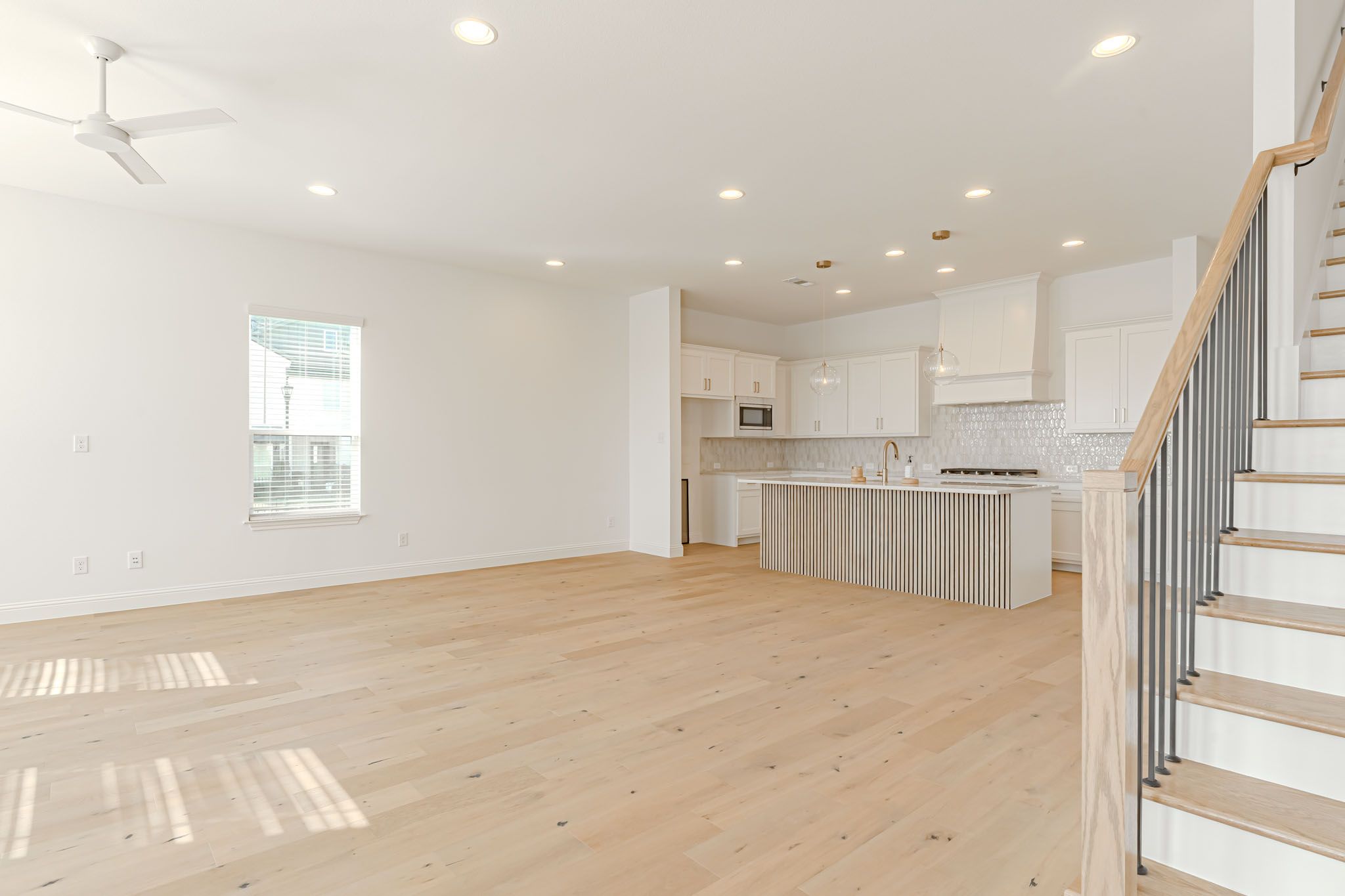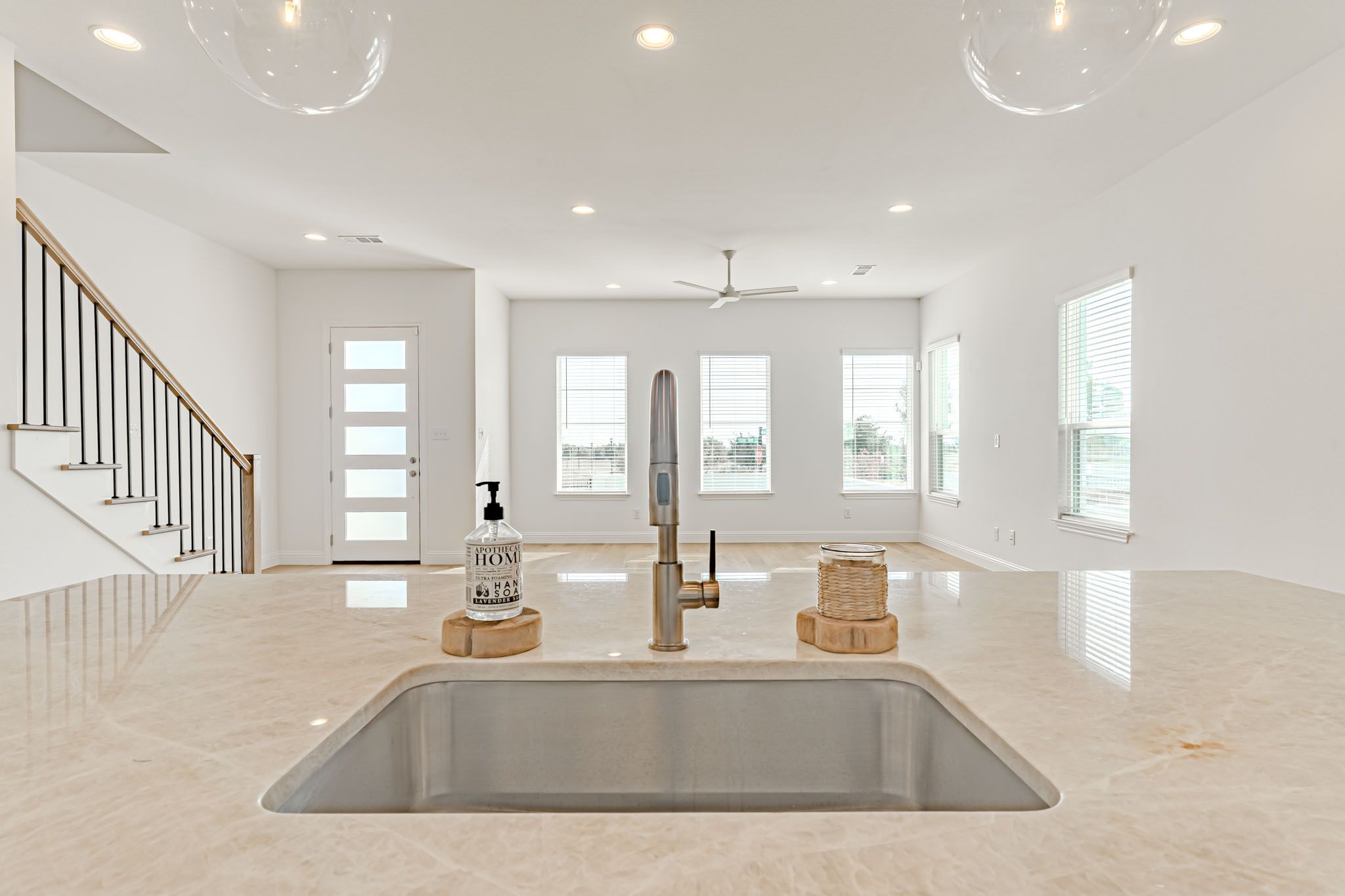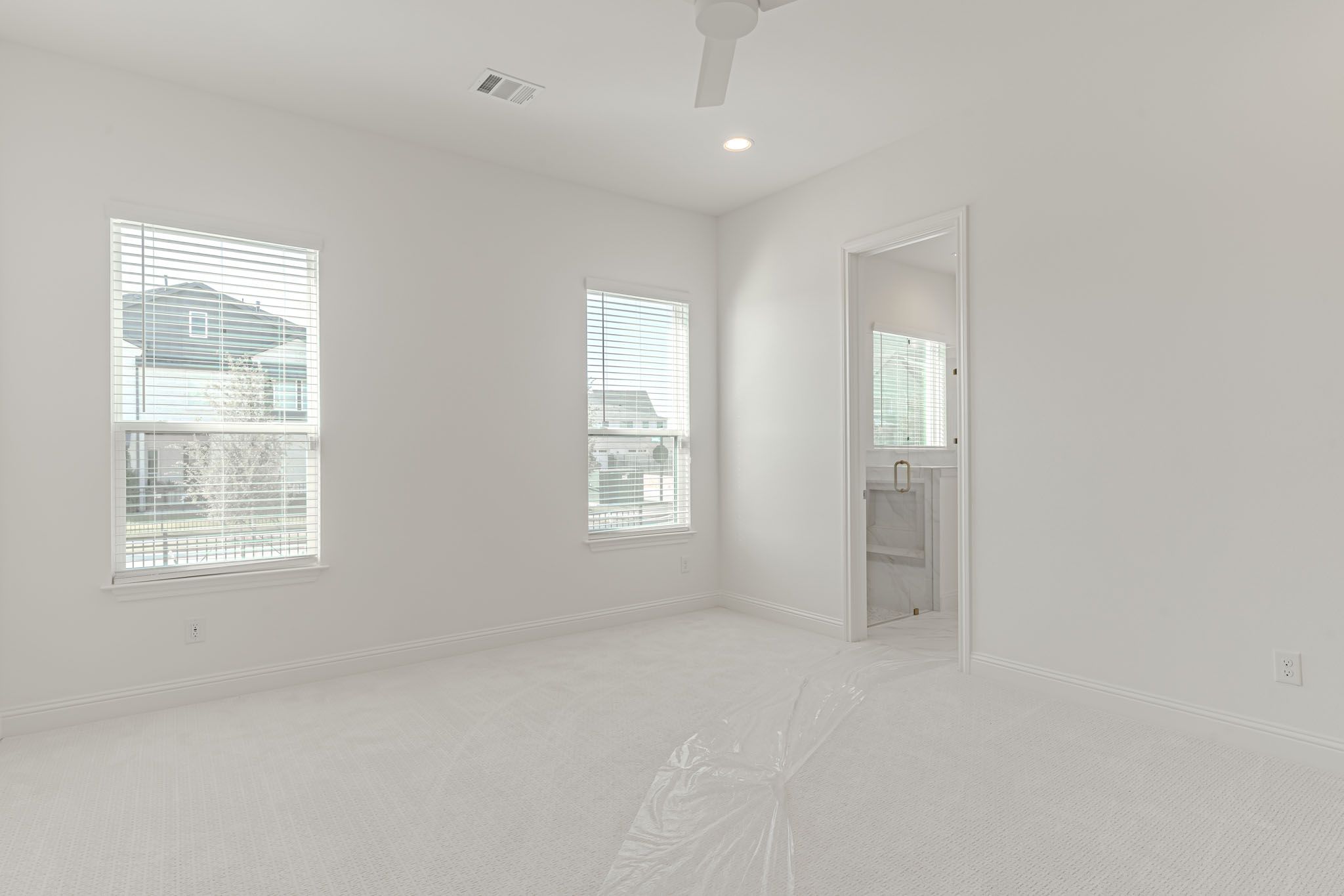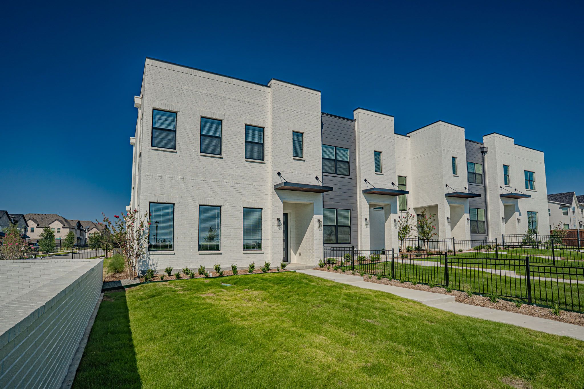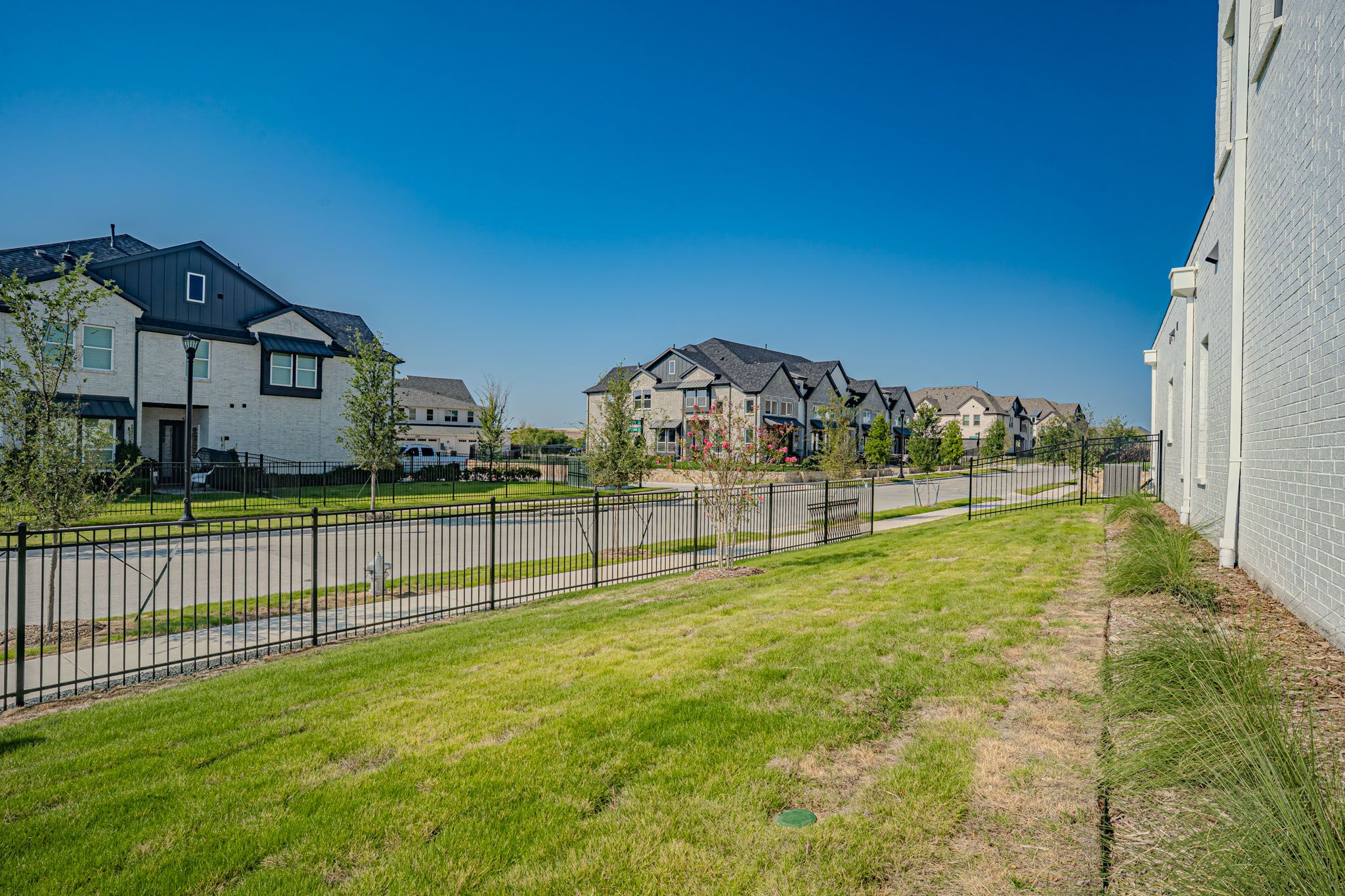 Light-filled and beautiful finishes with the owner's suite on the main floor in the new construction townhome that lives like a stand alone home. Huge fenced yard, with room for play or pets. Literally steps from the amenity center--family pool, tennis, basketball, pickleball, fitness center, adult pool, Maker's Space, and much more. Amazing location, 3 bedrooms, two living and 2.5 bathrooms. A must see in the Walsh community. Easy lifestyle, spacious living.